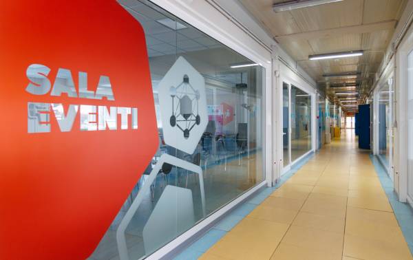 Le grafiche interne, composte da linee ed elementi geometrici sulle porte e lungo i corridoi, favorisce una chiara suddivisione delle differenti aree di competenza, invogliando gli utenti a farsi guidare negli spazi dalle forme e dai colori.