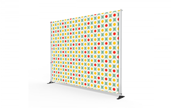 Questo fondali è completamente autoportante grazie alla leggera struttura in alluminio e si caratterizza per il suo montaggio pratico ed intuititvo. Il telo stampato in sublimazione può essere monofacciale o bifacciale ed è munito nella parte inferiore di una cerniera per il tensionamento.