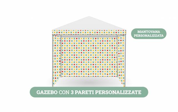 Gazebo con copertura e 3 pareti personalizzate