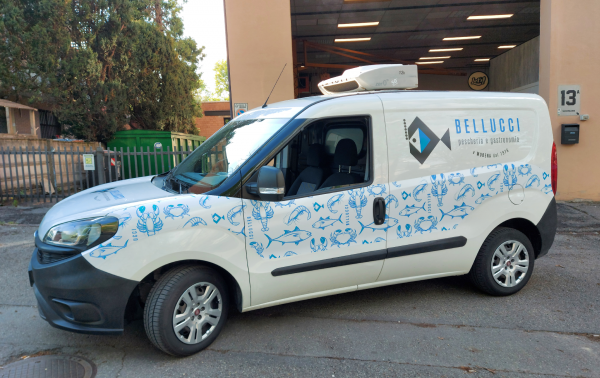 Il wrapping professionale per Bellucci Pescheria e Gastronomia a Modena rispecchia fedelemente l'identità del brand: il design minimalista composto da una palette colori essenziale e da un logo molto lineare definiscono l'estetica di questo mezzo, garantendone un'immagine sofisticata e immediatamente riconosibile.